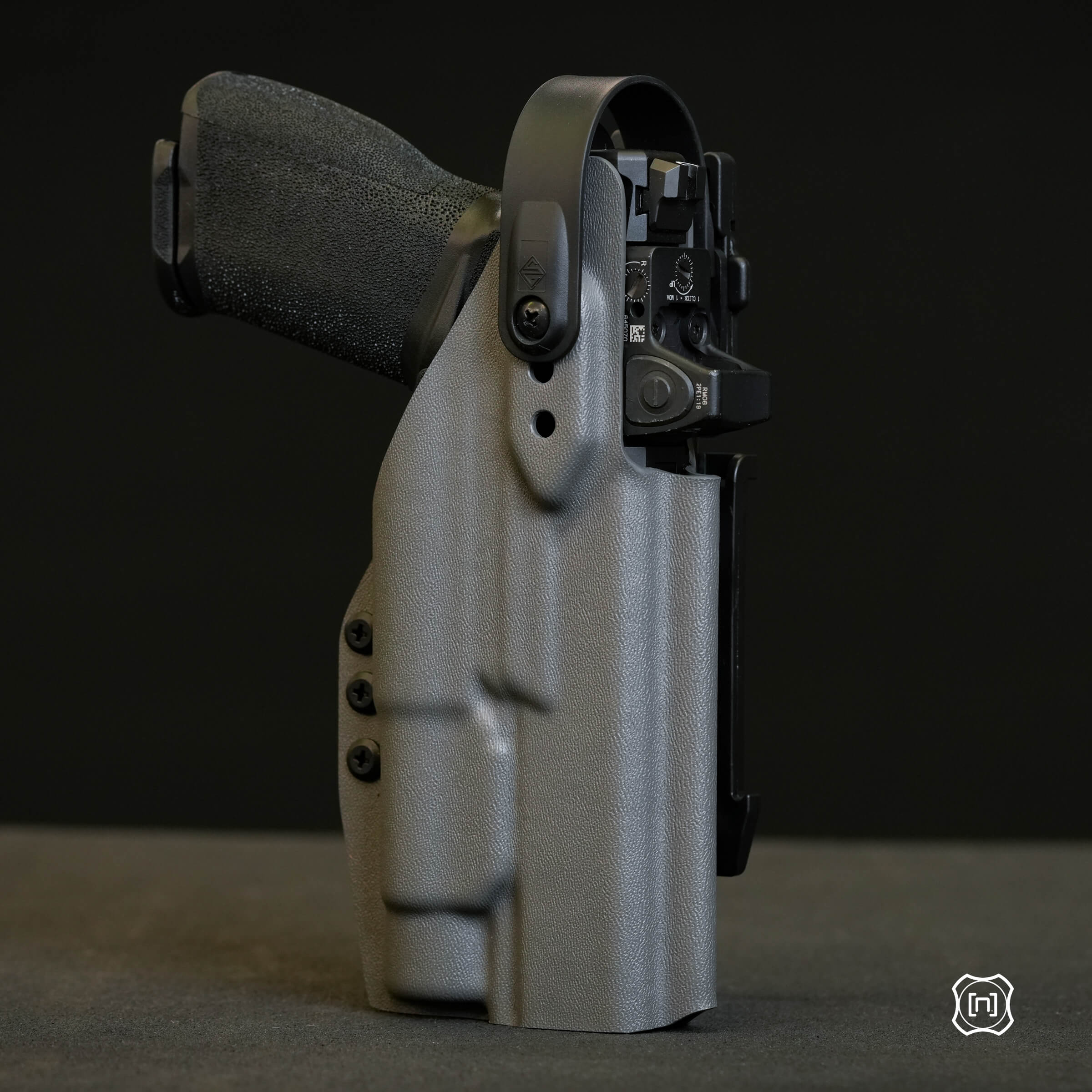 The [COFFIN] 2.0 Holster is designed for professionals and enthusiasts who demand superior retention, and rapid access while on the range range or duty use. Crafted from heavy duty Kydex, and precision CNC molded to fit your Springfield Armory, this holster features a thumb-deactivated retention hood for a secure hold and fast draw under pressure. Built for maximum durability, the [COFFIN] 2.0 offers top-tier attachment options such as Tek-Lok, Safariland QLS, ensuring versatile and reliable performance. Red dot compatible, it blends cutting-edge functionality with rugged reliability for high-performance environments.